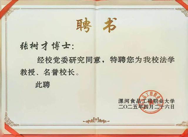 张树才博士通过书面形式表达了对学校厚爱的诚挚感激取对将来合做的殷切等候。他强调,漯河食物工程职业大学扎根于中国食物工业沉镇,特色明显,义务严沉。受聘为名望校长既是一份高尚的荣誉,更是一份轻飘飘的义务。他许诺将恪尽职守,积极搭建桥梁,努力于鞭策学校正在食物财产现代化管理系统建立、全财产链平安的法令取政策保障、村落复兴布景下复合型人才培育以及科技的机制立异等环节范畴进行深切摸索取实践。
