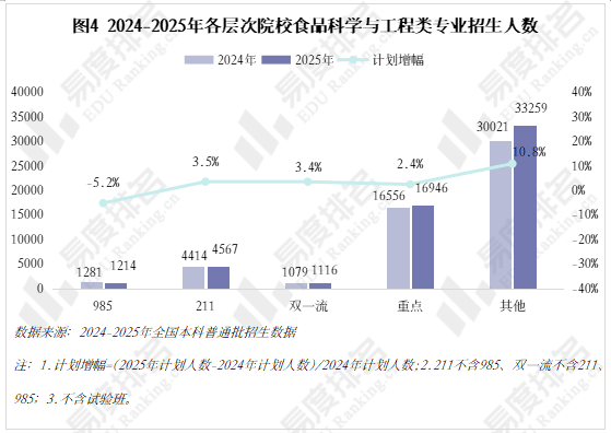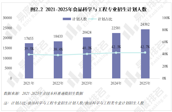 食物科学取工程专业正在整个专业类的占比逐年添加,从体地位愈加明显,但增速起头放缓,远不及一些新兴专业,如食物养分取健康专业从2021年的0。7%激增至2025年的7。2%。这取专业之间基期数据差别不无关系,但必然程度上也反映出高校将更多比例投放至细分范畴,从2024-2025年招生打算增幅来看,咖啡科学取工程、食物平安取检测、粮食工程、食用菌科学取工程排名前四。将来,切近市场需求、标的目的愈加明白的专业招生将比近似大类招生的保守专业更受关心。