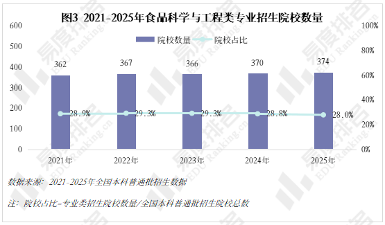 取专业点数量增加趋向分歧,食物科学取工程类专业招生院校数量也正在逐年添加,几乎每年都有4-5所院校新开设该专业类,仅正在2023年下降1所。但其增速不及全国本科招生院校增加速度,院校占比正在2023年达到峰值后回落。